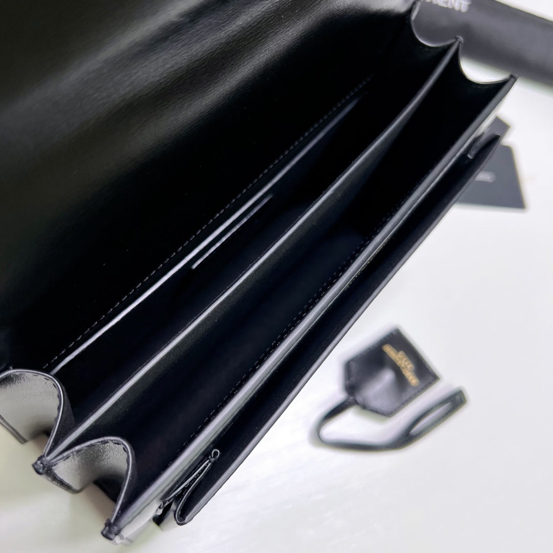 ENVELOPE CHAIN BAG 24 IN BLACK CALFSKIN