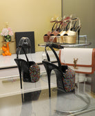 SL SUPER HIGH HEELS SANDAL RAINBOW CRYSTAL SATIN