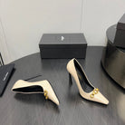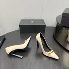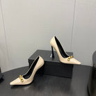 HIGH PUMPS IN CREAM GLOSSY CALFSKIN ATTACHED GOLD CHAIN