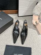 LEE SLINGBACK MID PUMPS IN BLACK CROCODILE SHINY CALFSKIN