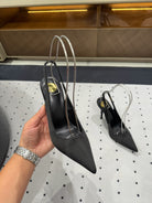 L'ENTRACTE SLINGBACK PUMPS IN BLACK SATIN