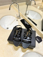 SL CASSANDRA FLAT SANDALS BLACK CALFSKIN