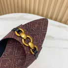 SL CHAIN ATTACH HEELED MULES BROWN DENIM