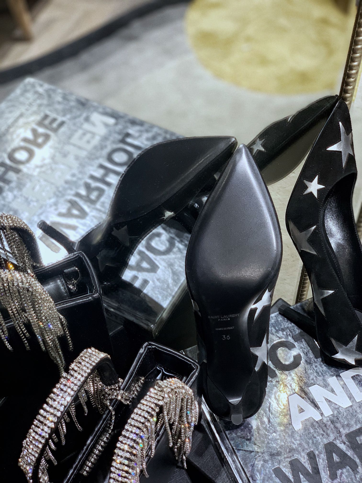 SL CHARLOTTE SILVER STAR PUMPS BLACK SUEDE