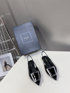 SL SQUARE BUCKLE SLINGBACK BLACK POLISHED CALFSKIN