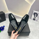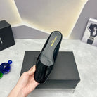 SL SQUARE TOE FLAT MULES BLACK POLISHED CALFSKIN