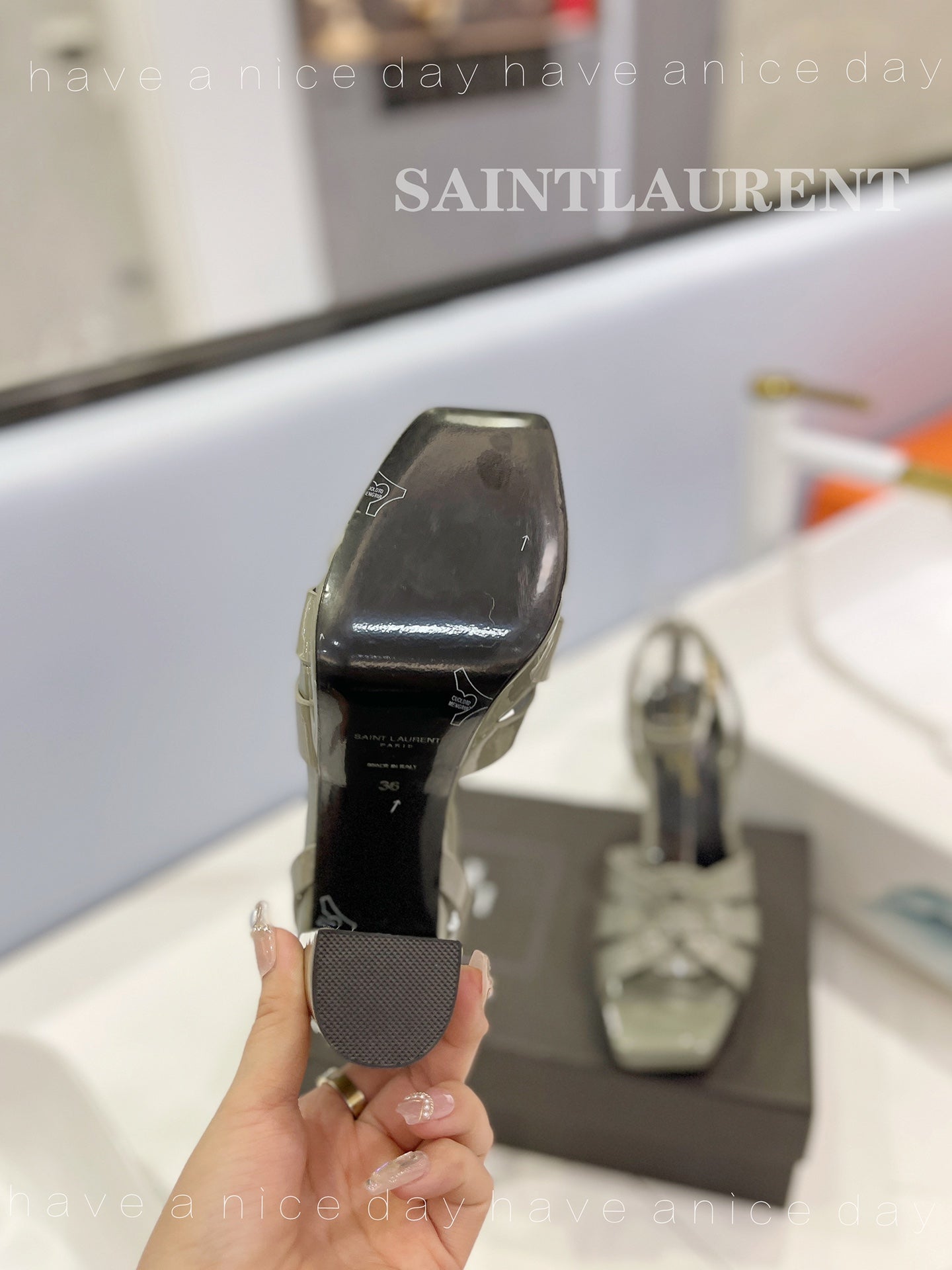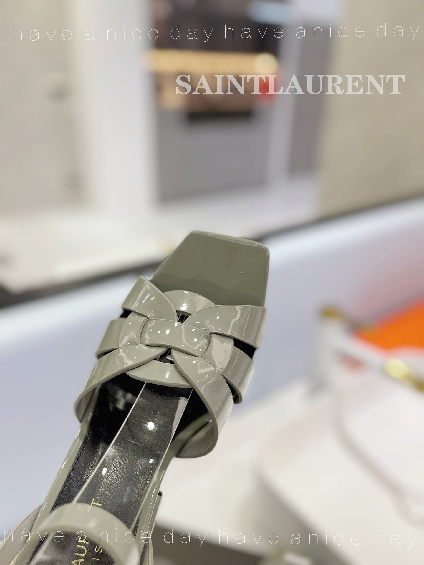 SL TRIBUTE FLATFORM SANDALS GLOSSY SAGE CALFSKIN