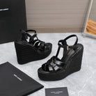 SL TRIBUTE WEDGE SANDALS BLACK POLISHED CALFSKIN