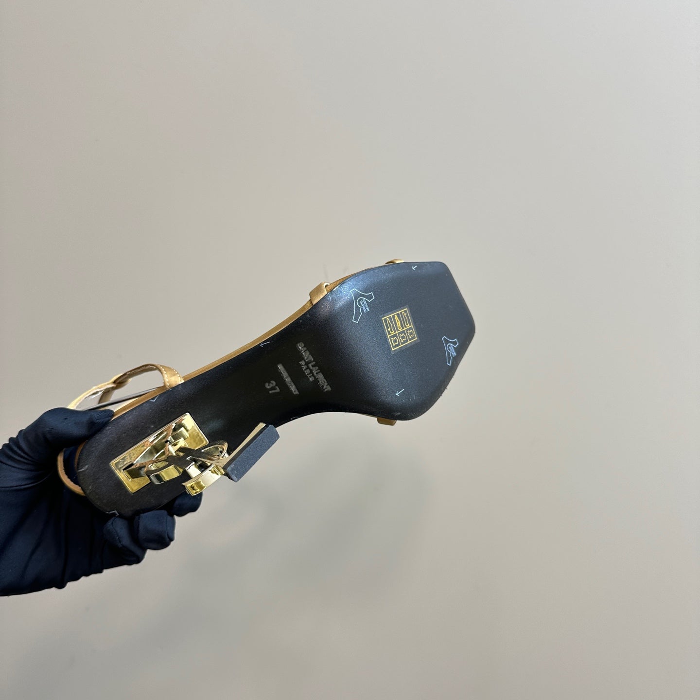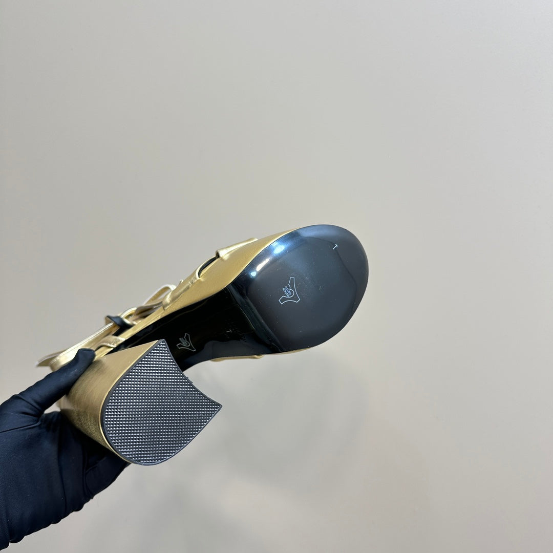 OPYUM GOLD HEEL SLINGBACK PUMPS IN BLACK GLOSSY CALFSKIN