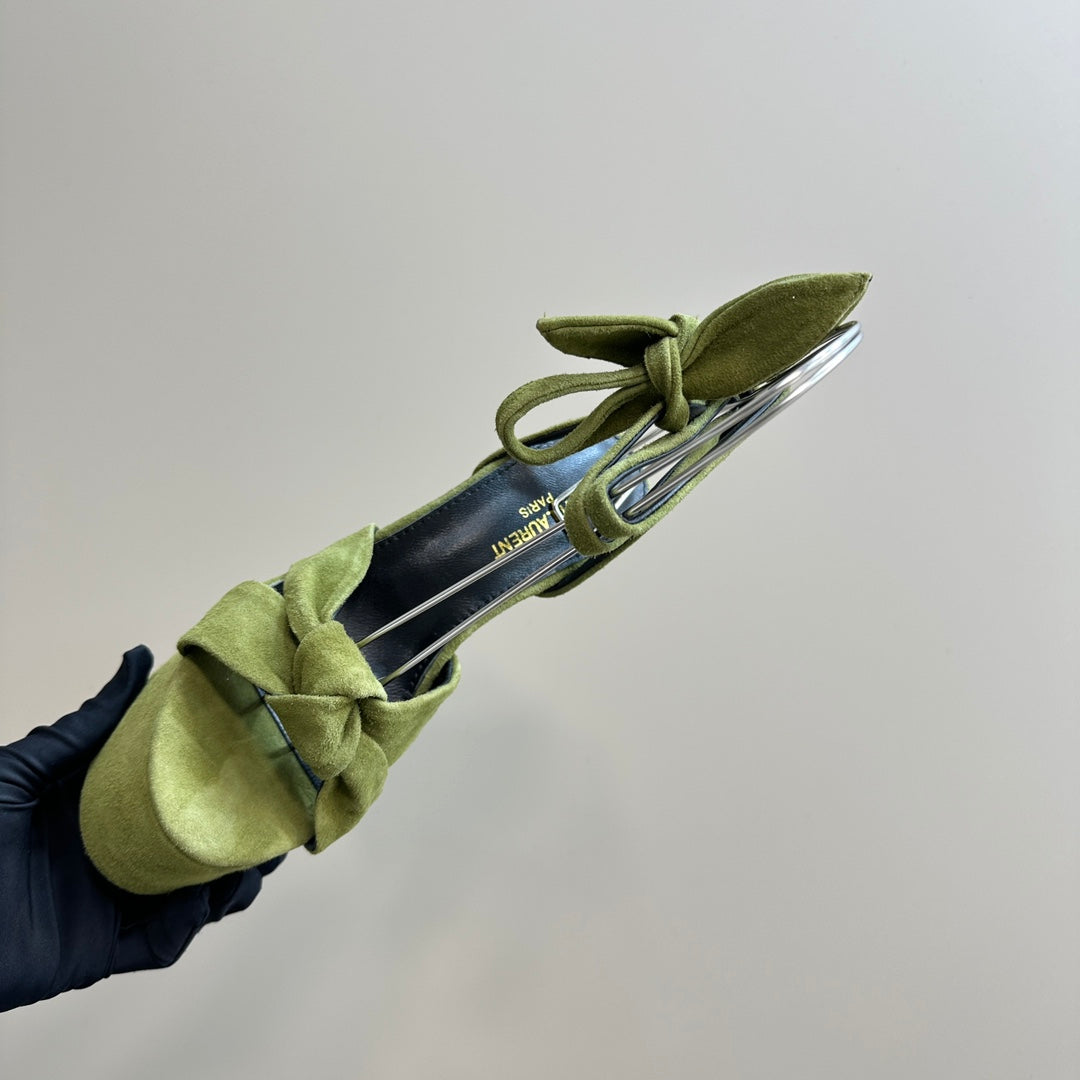 L'ENTRACTE SLINGBACK PUMPS IN BRONZE BROWN SATIN
