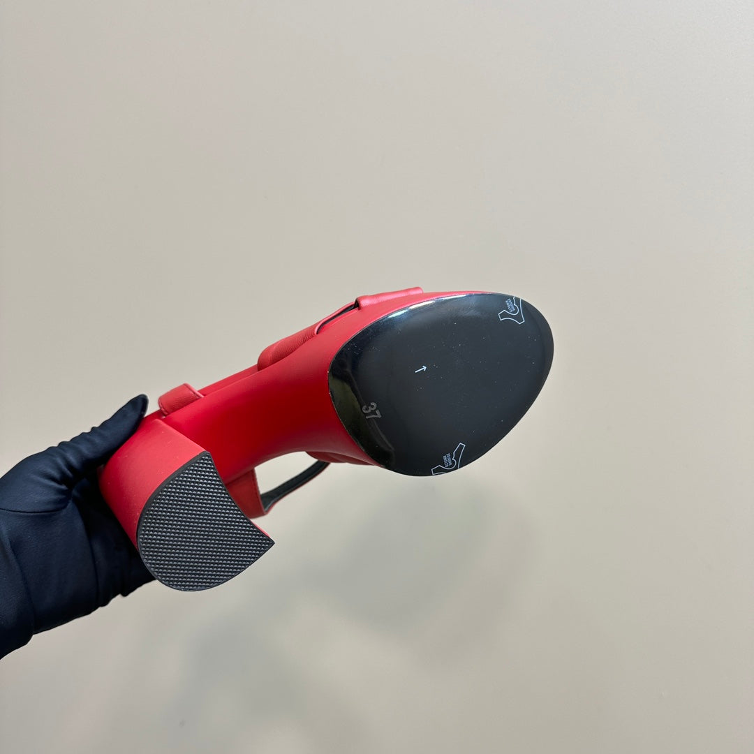 OPYUM RED HEEL SLINGBACK PUMPS IN BLACK GLOSSY CALFSKIN