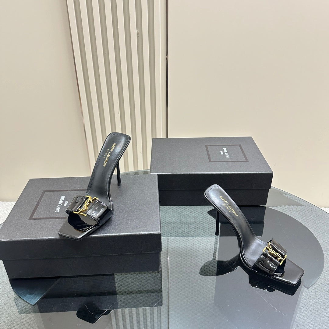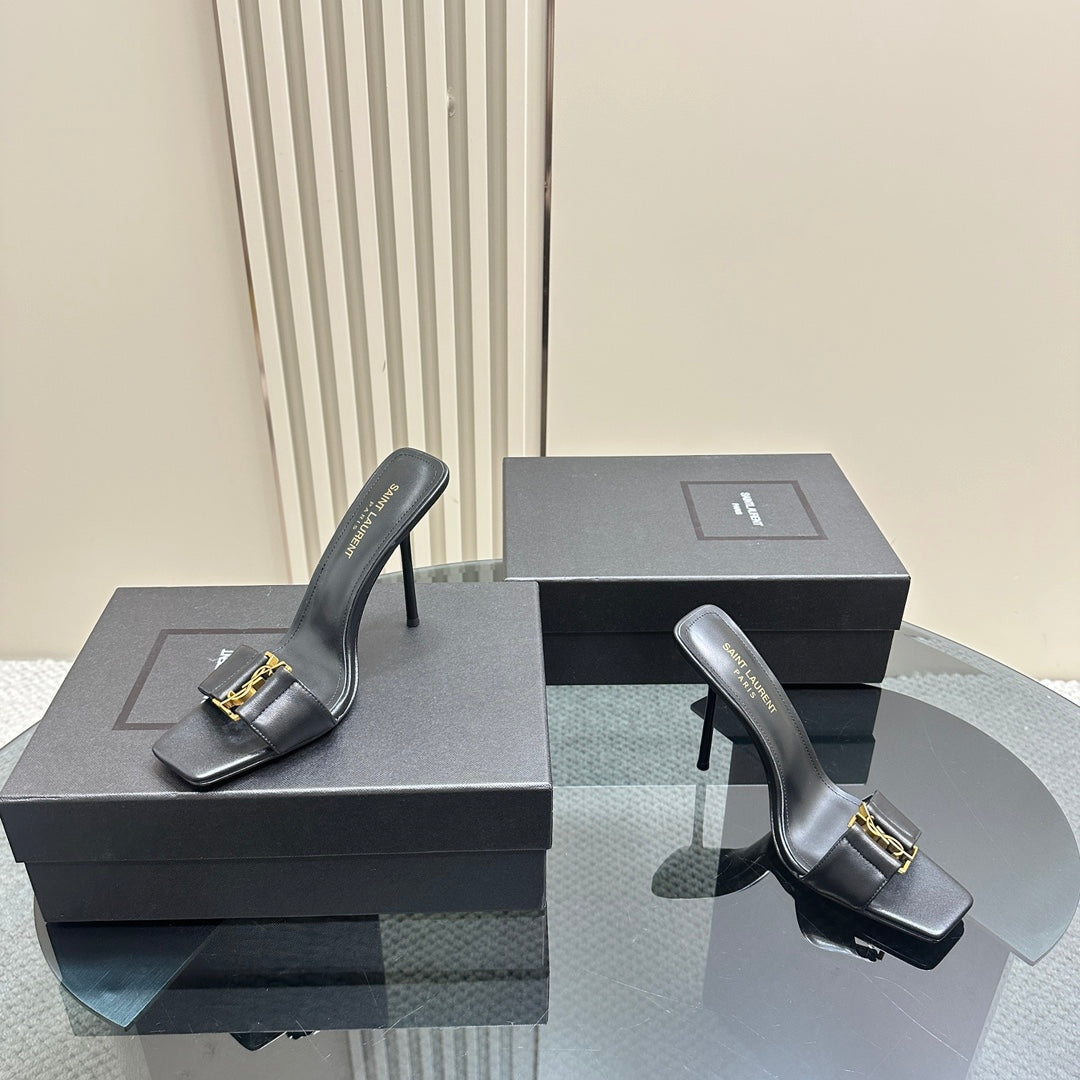 SL SQUARE TOE MULES BLACK CALFSKIN