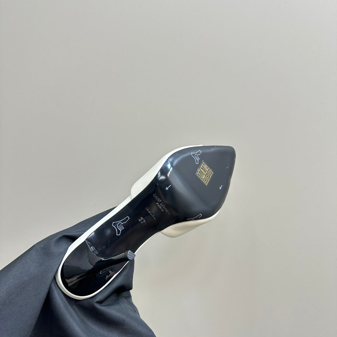 SL TRAPEZE HEEL SLINGBACK PUMP WHITE CALFSKIN