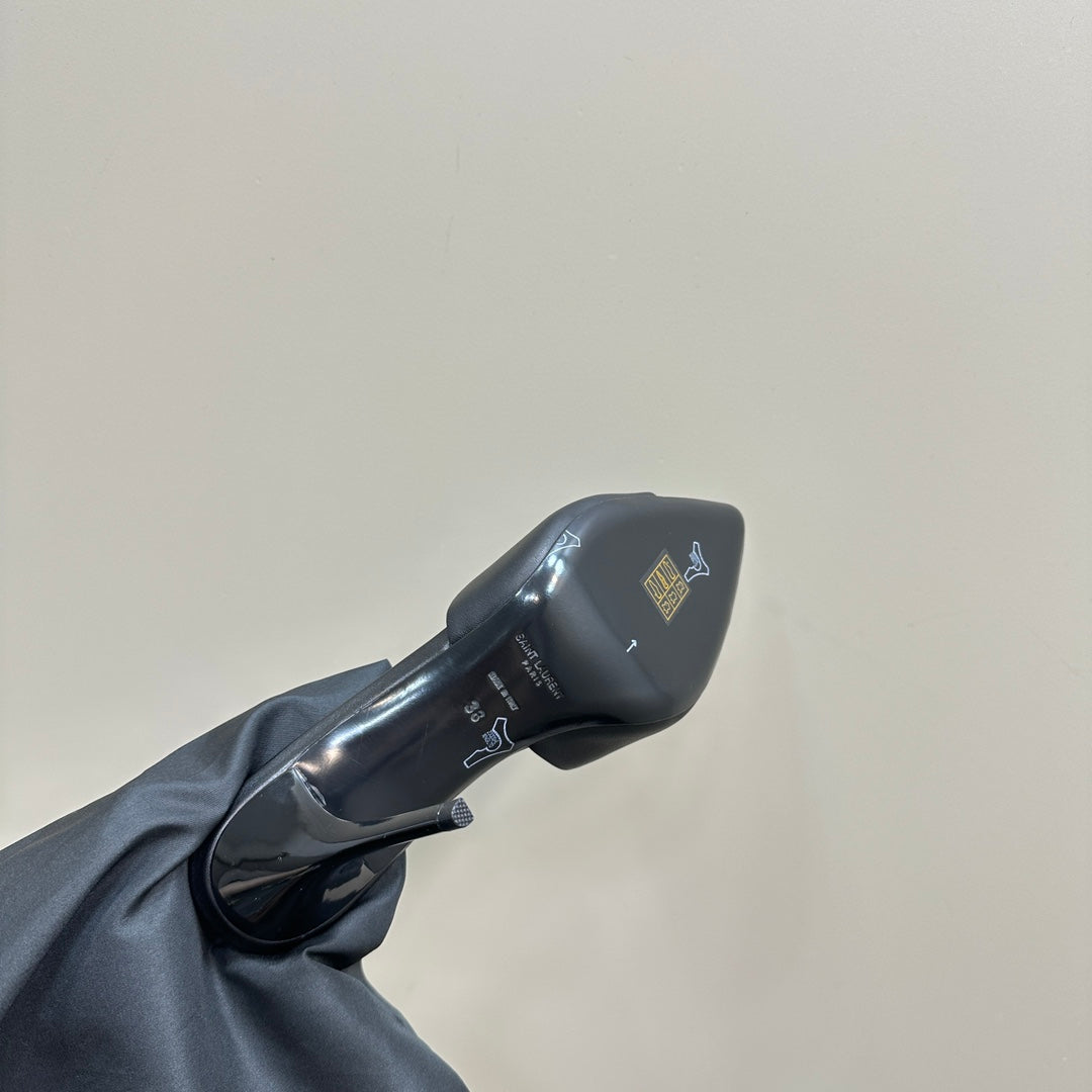 SL BABYLONE SLIDE PUMPS 115 BLACK POLISHED CALFSKIN