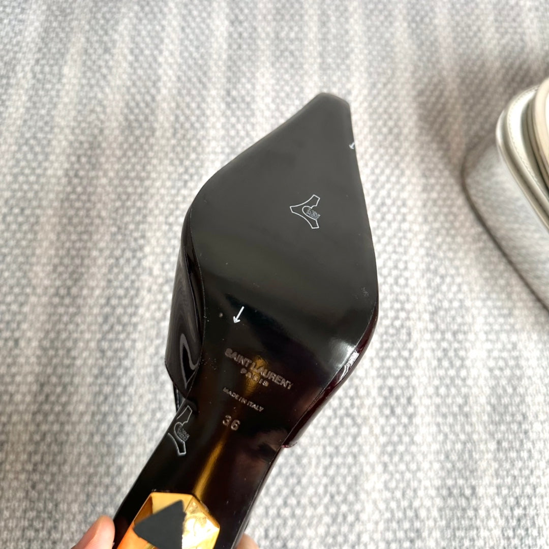 SL JEANNE SLINGBACK PUMPS BLACK POLISHED CALFSKIN
