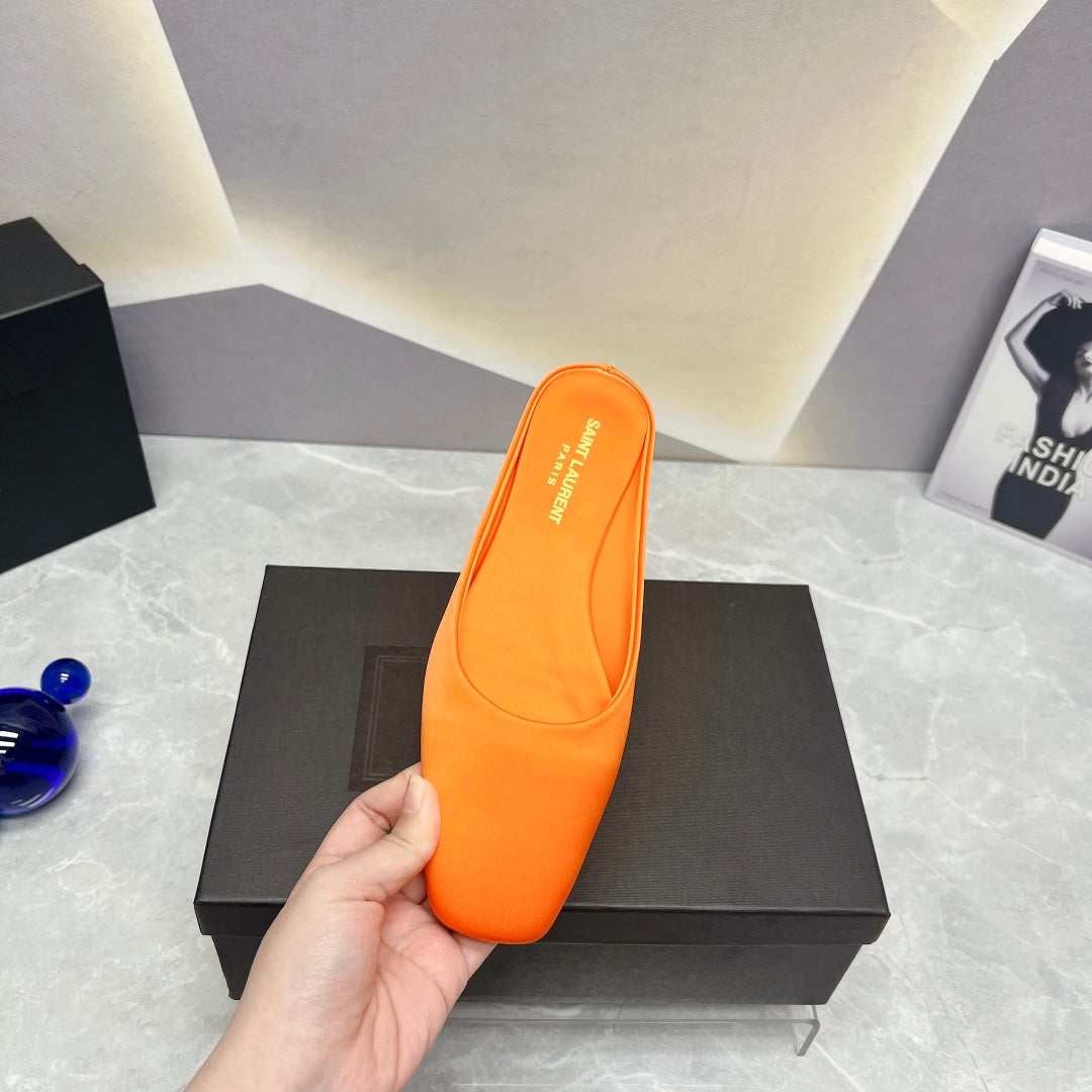 SL SQUARE TOE FLAT MULES LEMON SATIN