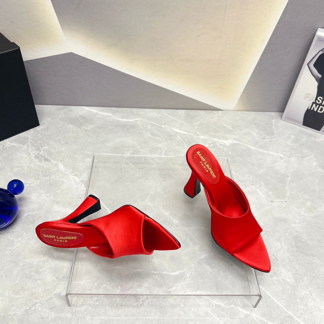 SL SQUARE TOE FLAT MULES MOSS SATIN