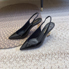 OPYUM GOLD HEEL SLINGBACK PUMPS IN BLACK GLOSSY CALFSKIN