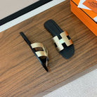 - Material: Sandal in calfskin with iconic "H" cut-out.