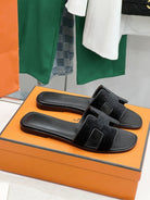 • Material: Sandal in velvet goatskin with iconic "H" cut-out.