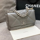 19 FLAP BAG 26 DARK GREY GOATSKIN SILVER HARDWARE