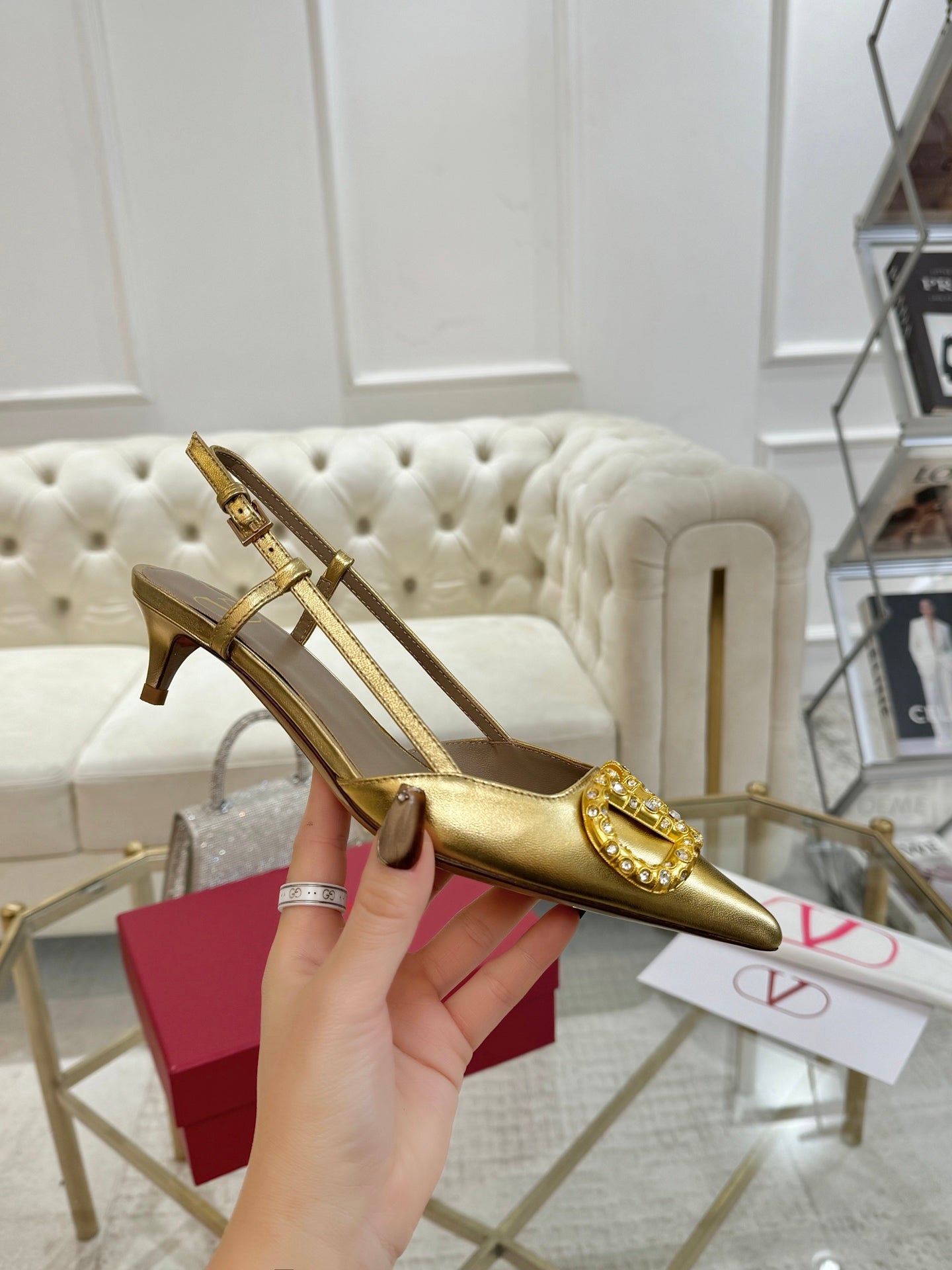 2 Rockstud Slingback 90mm Matte Red