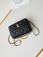 24a small flap bag 23cm black lambskin pearl and gold hardware
