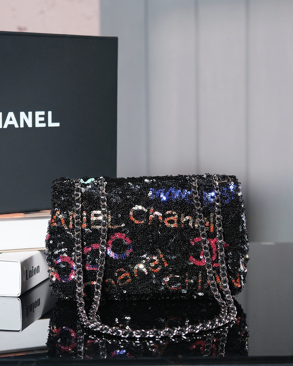 24S Flap Bag 20cm Multicolor Sequin Calfskin