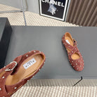 Alaia 2025 Criss Cross With Stud Ballet Flats Brown Suede 293213