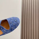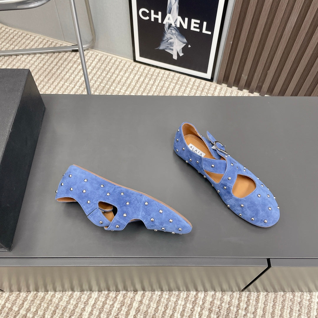Alaia 2025 Criss Cross With Stud Ballet Flats Royal Blue Suede 293211