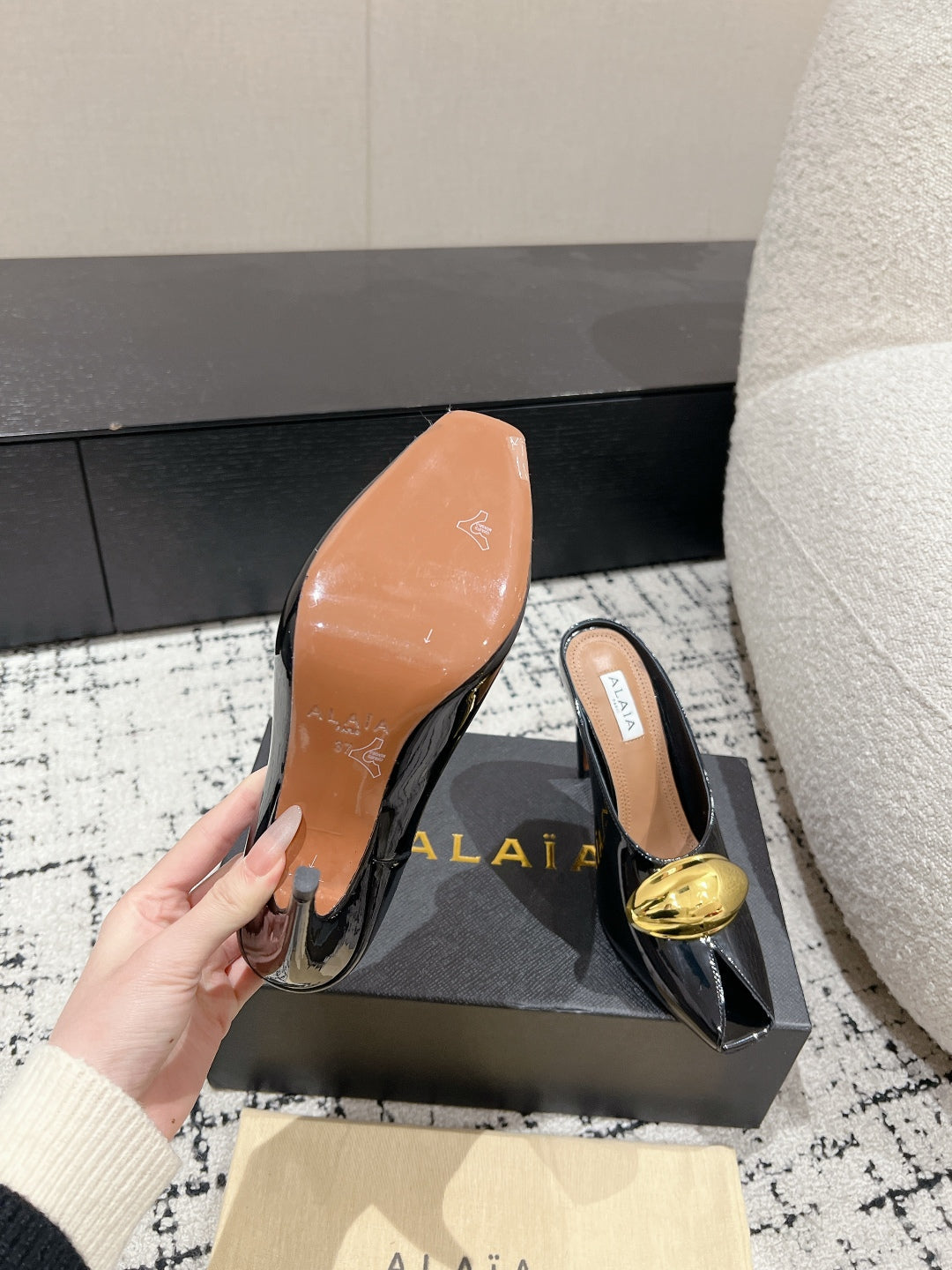Alaia 25 Azzedine High Heels Mules With Gold Hardware Glossy Black Calfskin 293188