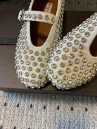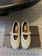 Alaia 25 Strass Ballet Flats White Suede Goatskin 303727