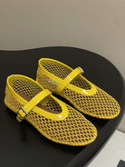 ALAIA BALLET FLATS IN YELLOW MESH FISHNET