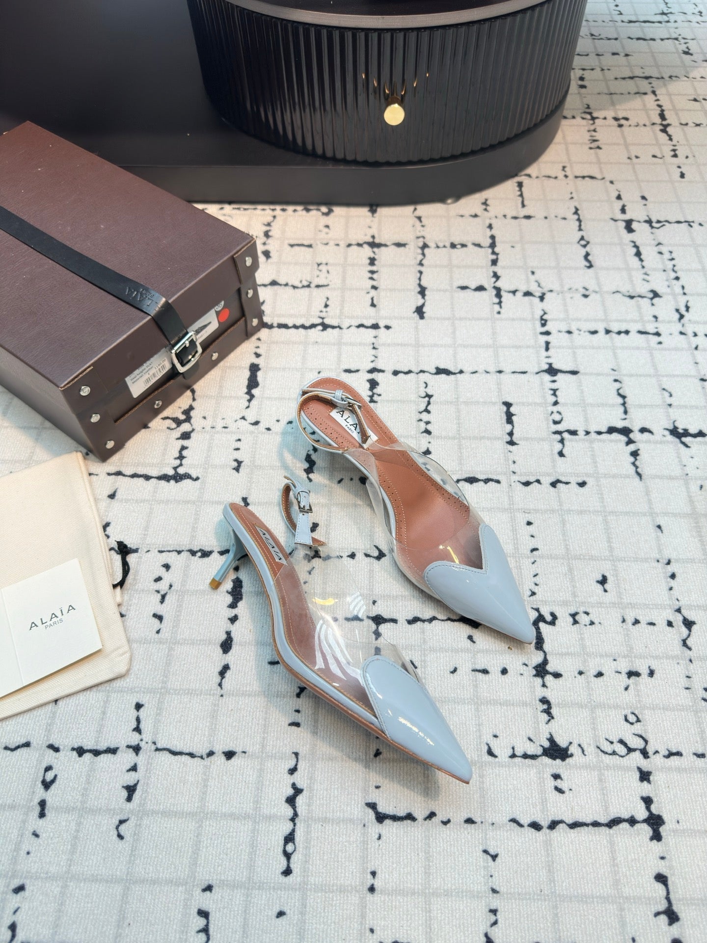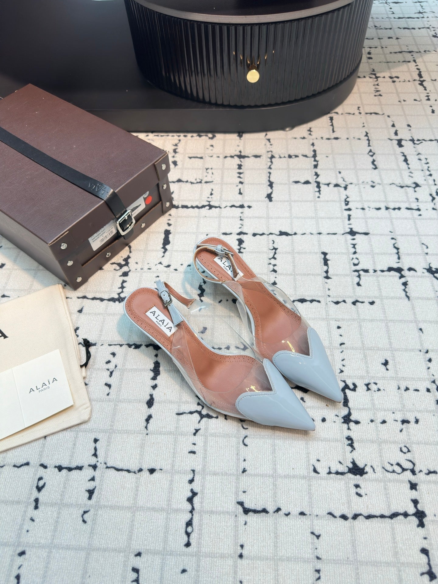 Alaia Heart 50mm Heels Slingbacks Blue Sheepskin 810208