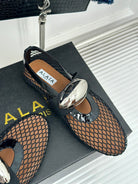ALAIA MARY JANE SHOES IN BLACK MESH WITH SILVER HARDWARE
