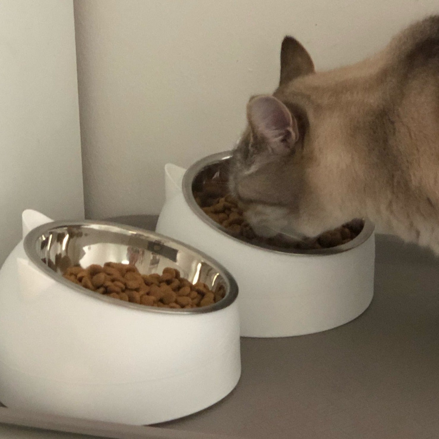 Bols surélevés en acier inoxydable 15° design chat VENI