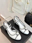 Chanel 25 Slingback White Black Sheepskin 473059