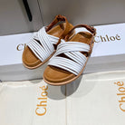 CHLOÉ CROSS STRAP SANDAL IN WHITE MIX BRONZE BROWN RUBBER WITH GOLD HARDWARE
