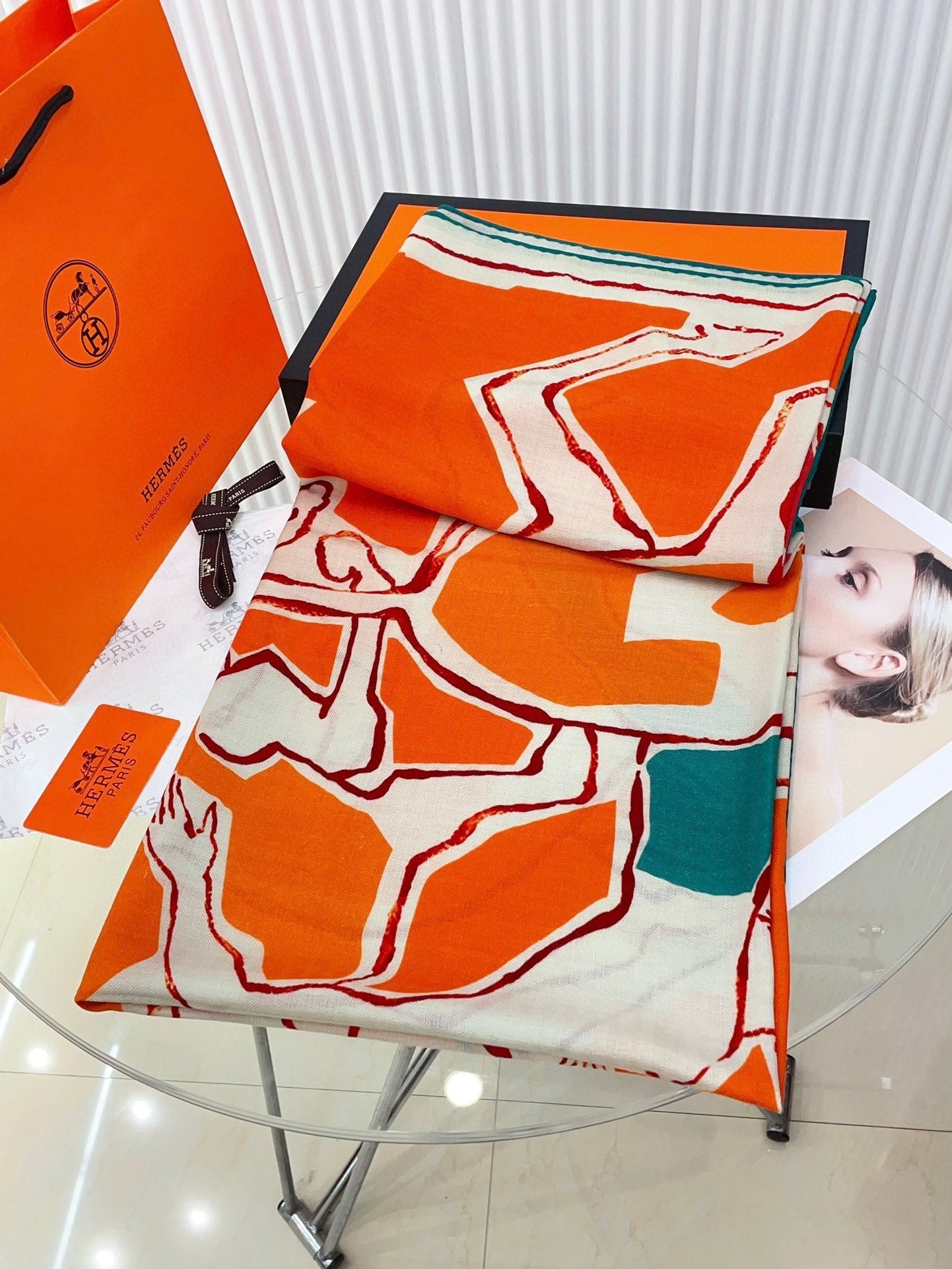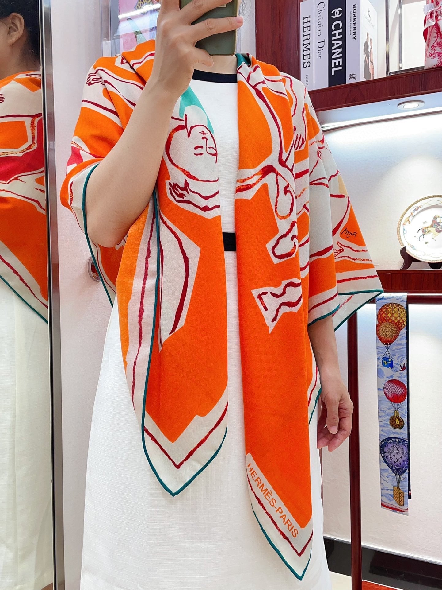 Choregraphie Equestre Scarf 140 CM Orange Colorful Cashmere And Silk 393170