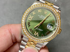 DATEJUST 31MM GOLD STEEL DIAMOND BEZEL GREEN DIAL