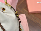 DRAWSTRING BUCKET BAG 21 IN WHITE CANVAS GOLD HARDWARE
