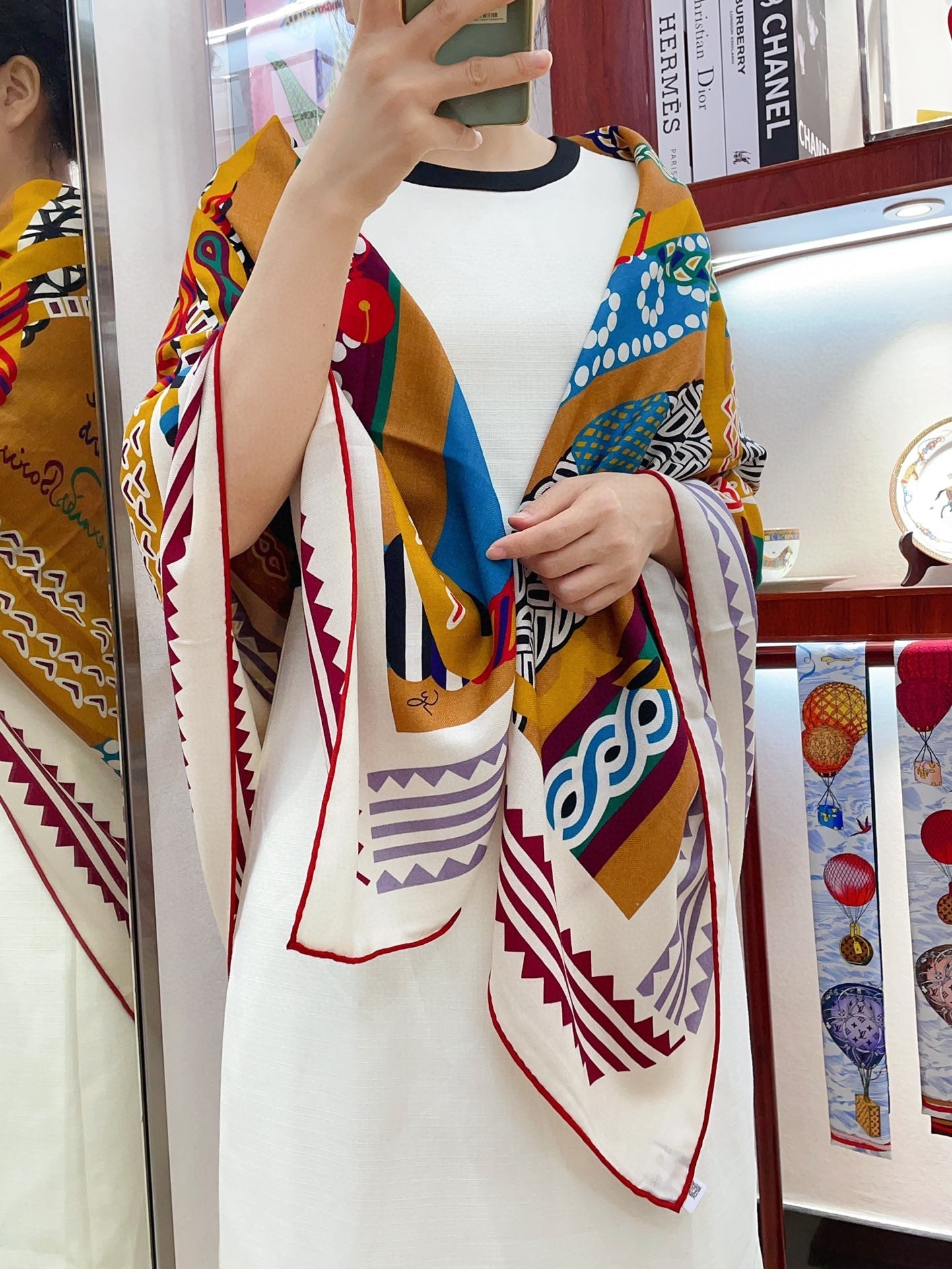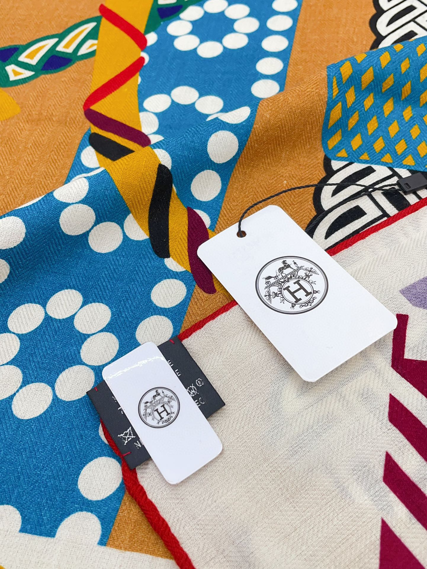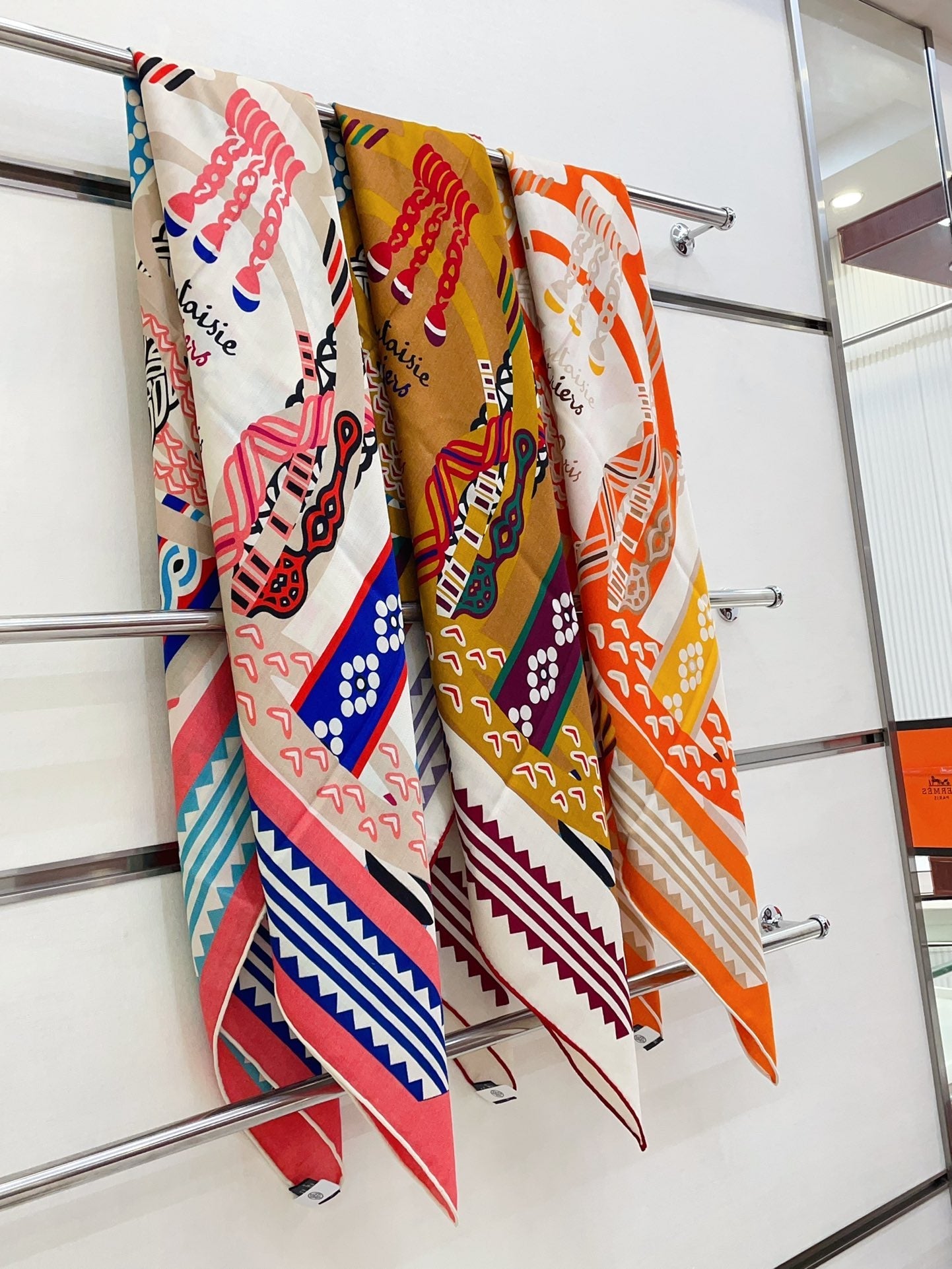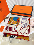 Fantaisie d'Etriers Shawl 135 CM Dark Yellow Colorful Cashmere And Silk 402080