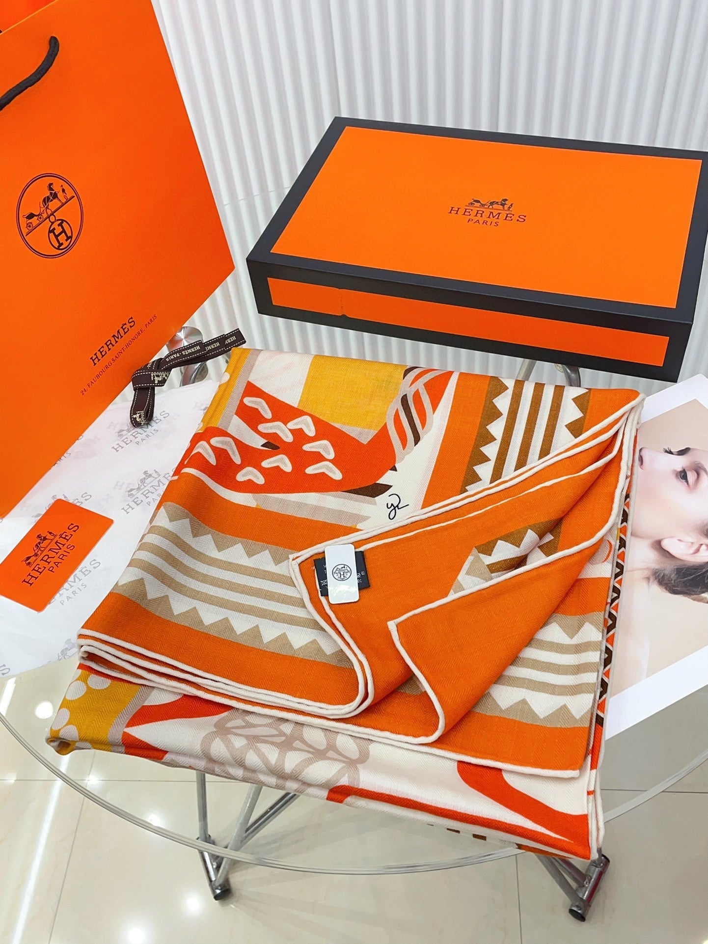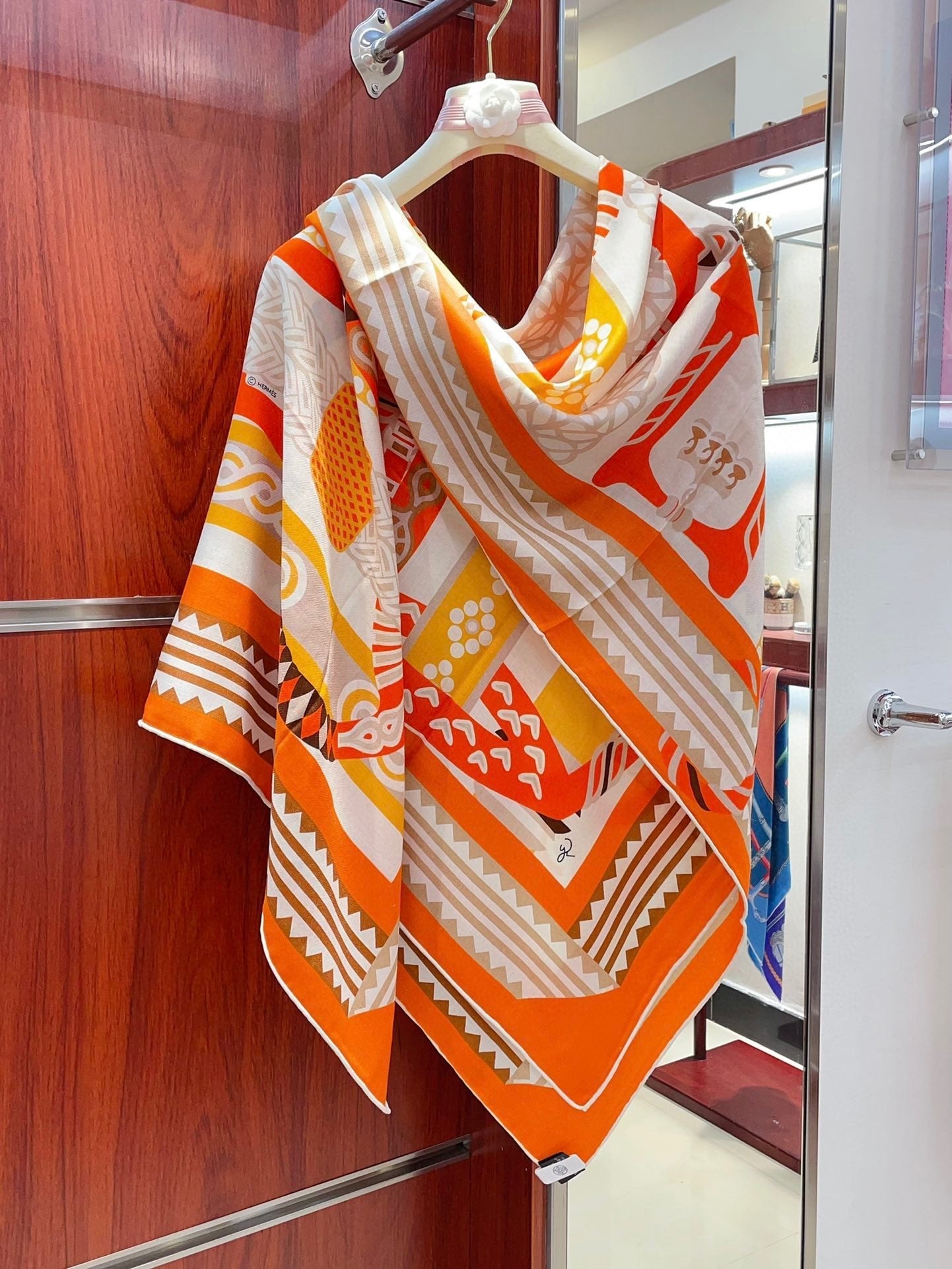 Fantaisie d'Etriers Shawl 135 CM Orange Colorful Cashmere And Silk 402081