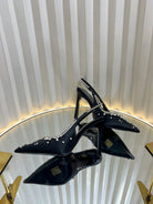 GC 2025 Crystal Embellished High Heels Slingbacks Black Silk Sheepskin 294523