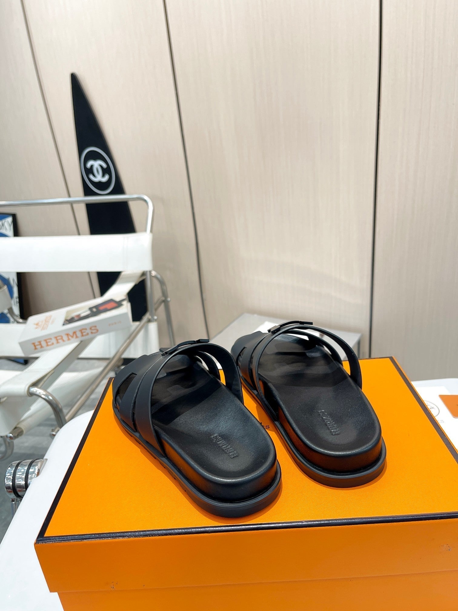 HM CHYPRE SANDAL BLACK WITH H-BUCKLECALFSKIN