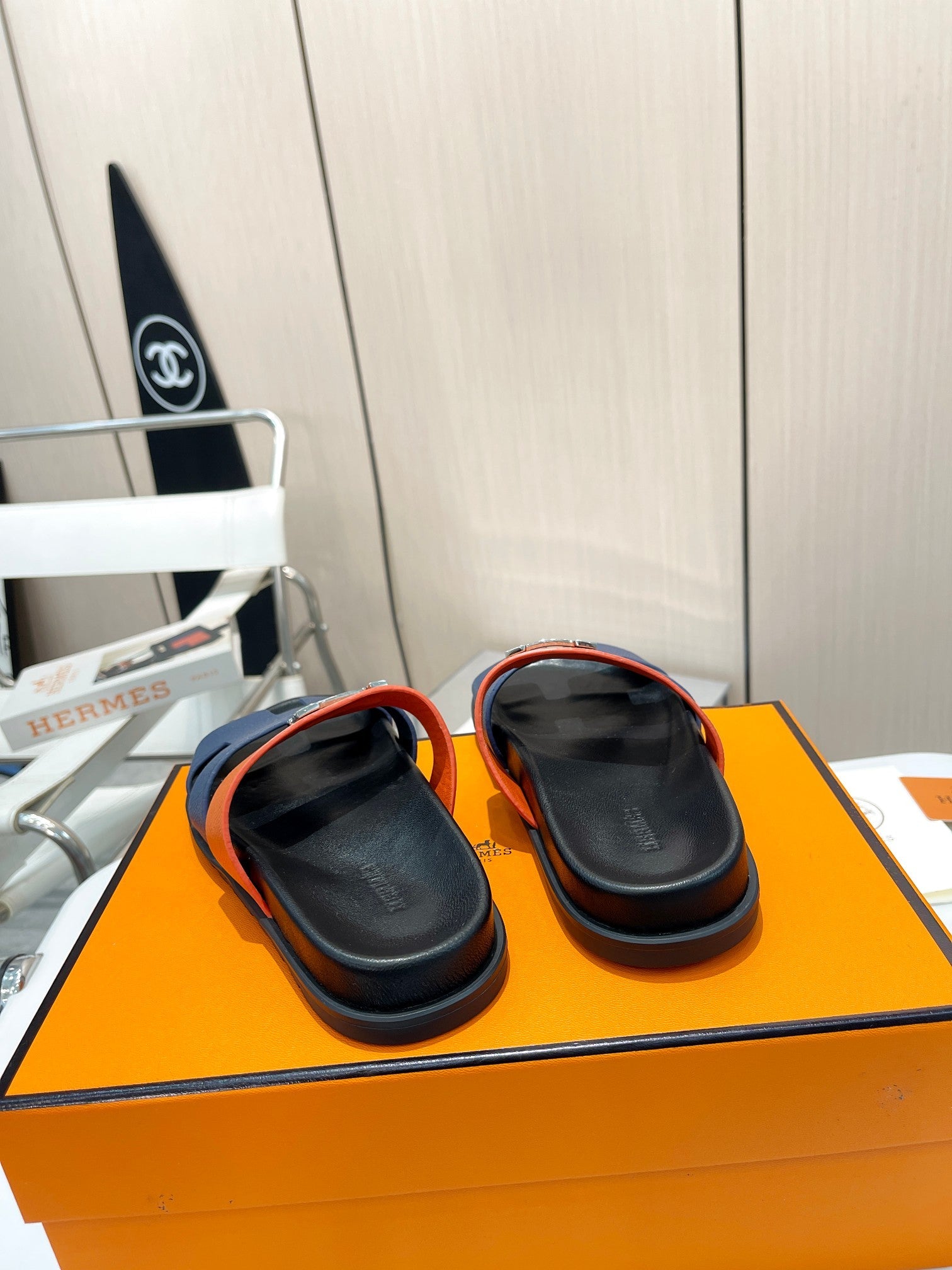 HM CHYPRE SANDAL INDIGO AND TIGER WITH H-BUCKLE CALFSKIN
