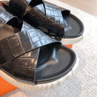 HM ELECTRIC CROCODILE MOTIF SANDAL BLACK CALFSKIN