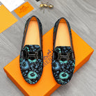 HM FLOWERS MOTIF LOAFER BLACK CALFSKIN