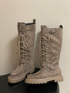 HM lace up boots belt buckle taupe suede
