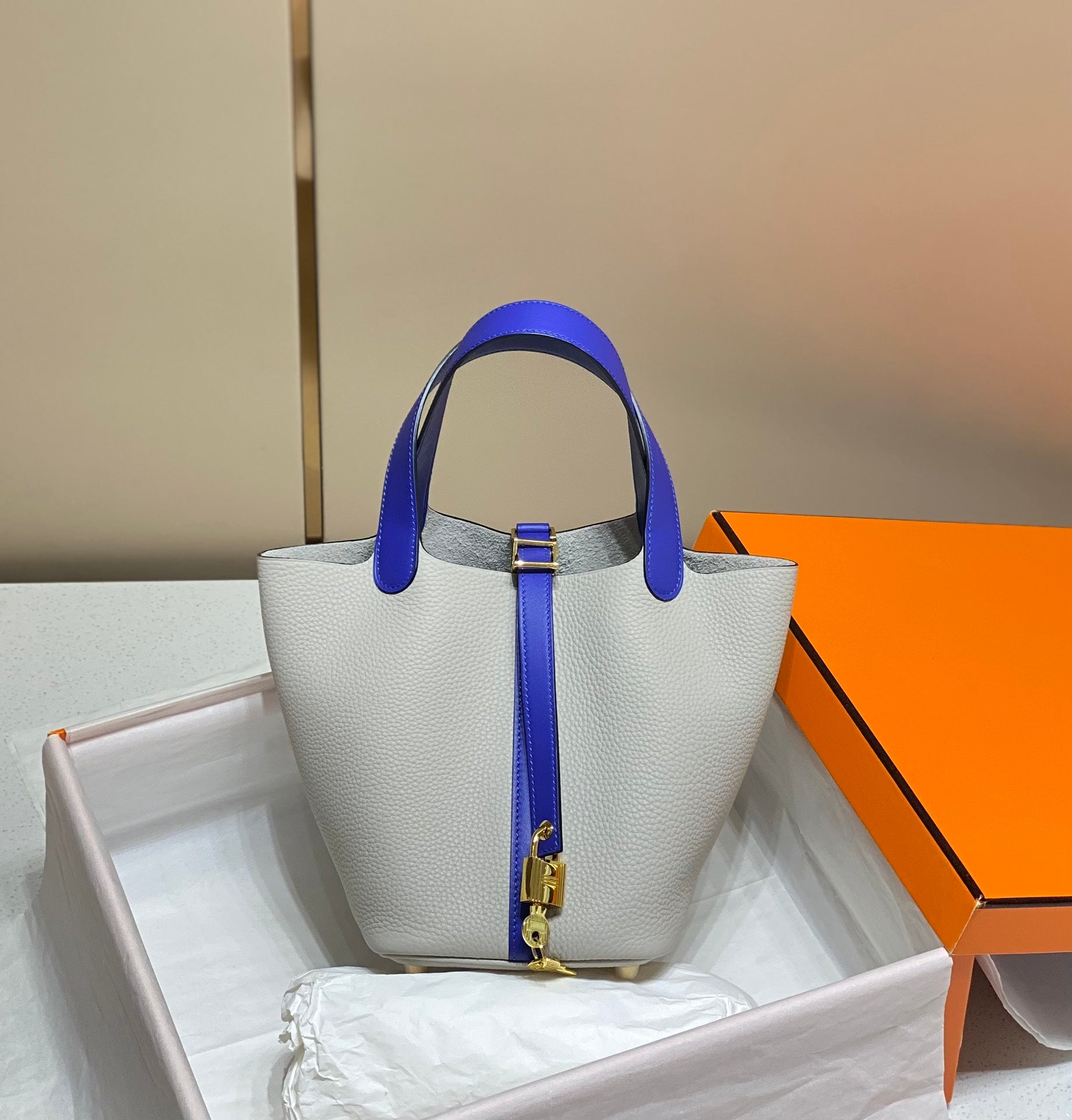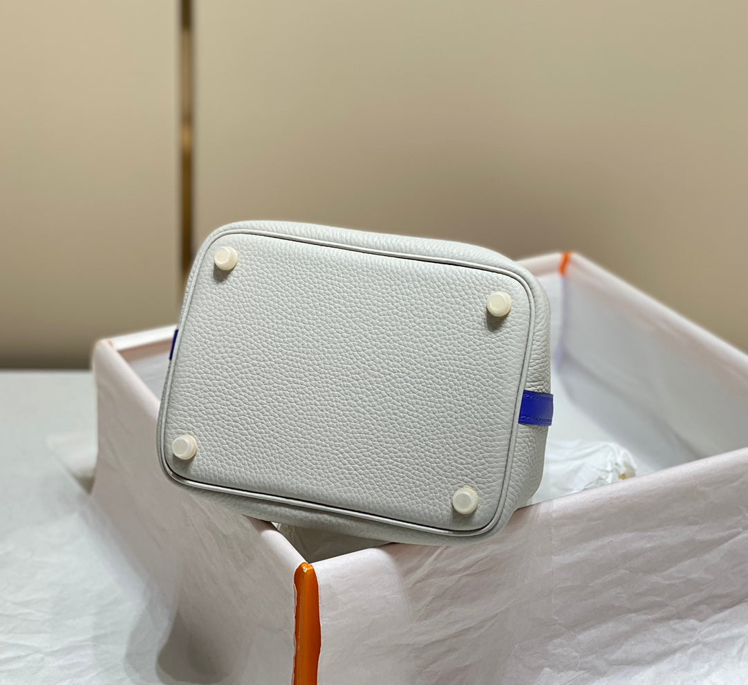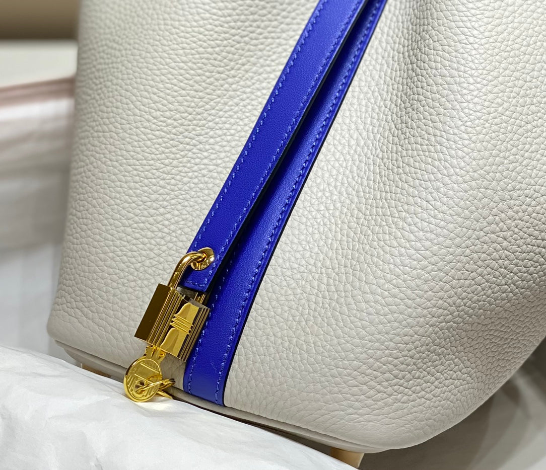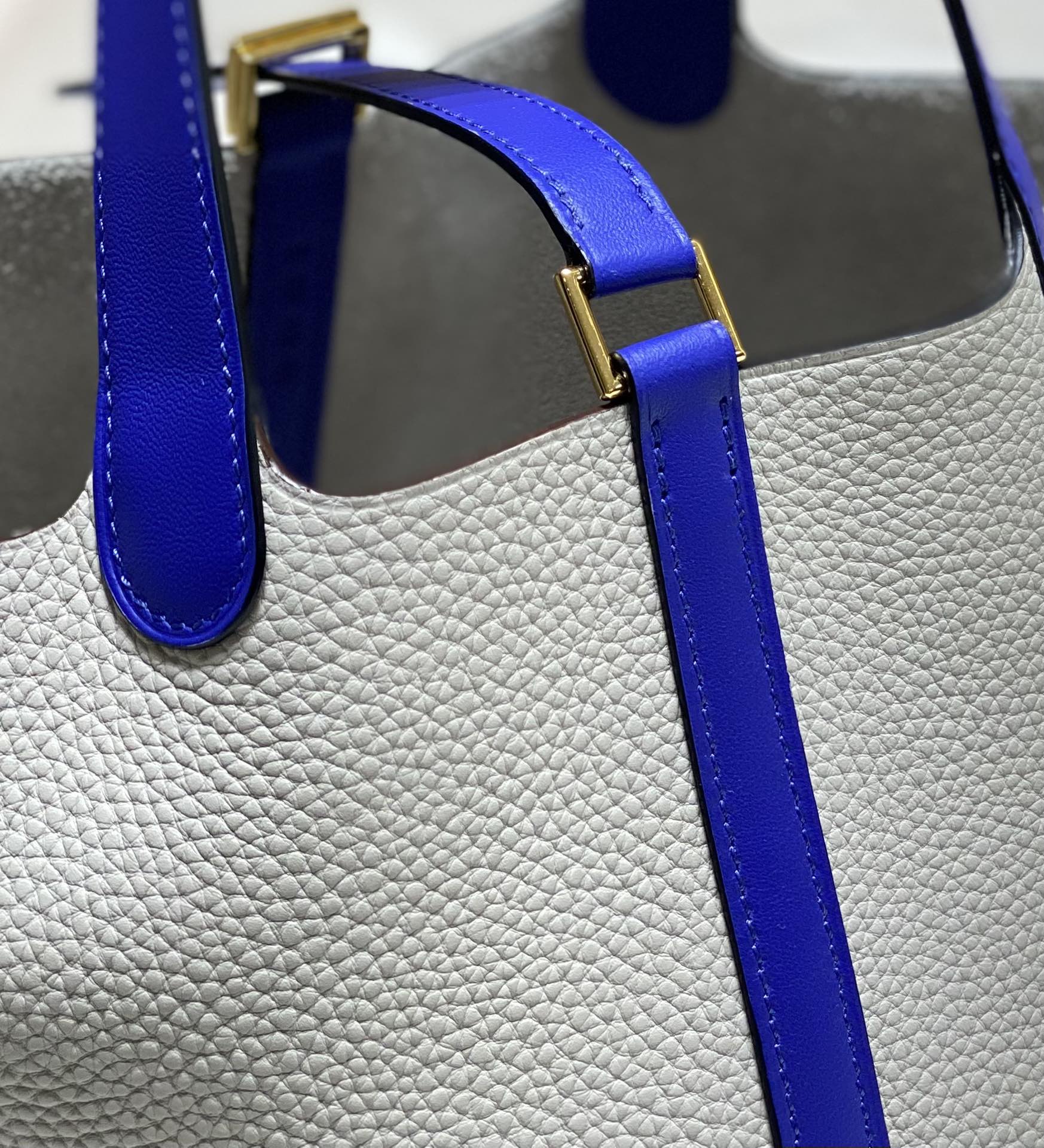 HM Pegase Pop Herbag Zip 31 White Blue Canvas Black Cowhide Leather